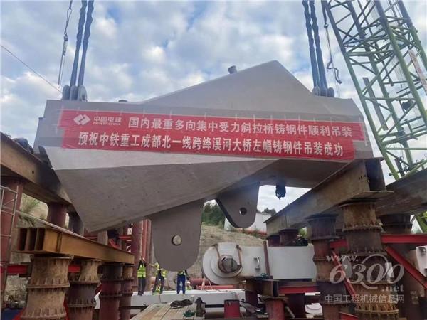6月6日,由中国水利水电第七工程局有限公司总承包、中铁重工西南分公司承建的成都跨绛溪河大桥项目上,中联重科履带式起重机助力大型铸钢件吊装到位,创下国内最重多向受力斜拉桥铸钢件吊装纪录。