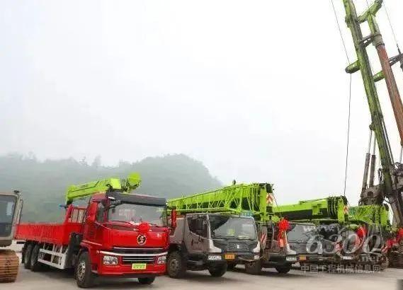 活动现场展示的直臂式随车吊和折臂式随车吊等设备