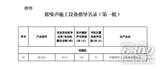 中联重科挖掘机入选国家首批《低噪声施工设备指导名录》