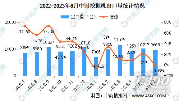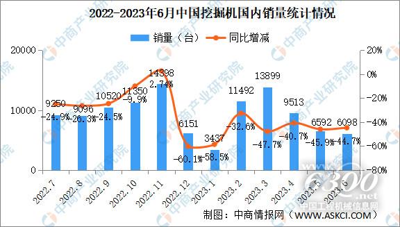 2023年6月销售各类挖掘机15766台,同比下降24.1%,其中国内6098台,同比下降44.7%;出口9668台,同比下降0.68%。