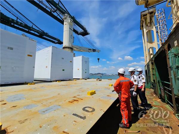 “本次出口大件较以往有很大不同。这批产品代表了目前中国工程建设产品的顶尖水平,国外项目部对此非常重视。由于重型工程设备装载作业难度大,加上台风天气复杂多变,货物的装载、压载、系固绑扎、稳性调整等安全作业都十分重要。”东莞沙田海事处执法人员吴焰宏表示,海事部门每天巡查船舶作业情况,利用CCTV、AIS等对货物装载过程实时监控。
