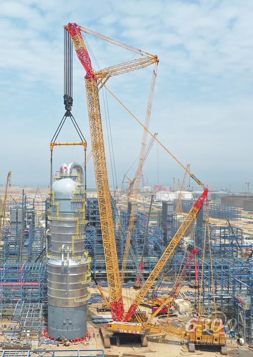 这台中石化起运公司所属的徐工4000吨履带起重机刚刚结束了裕龙石化项目的9台大型设备吊装任务,其中5台重量超千吨。金陵石化项目中,XGC88000 履带起重机将在净化装置技术改造项目关键设备的吊装中一展猛龙过江之势。