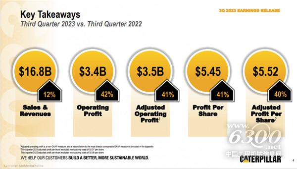 近日,卡特彼勒公布第三季度财报,2023年第三季度卡特彼勒实现营收168亿美元,同比增长12%;实现净利润约27.94亿美元,同比增长36.89%。卡特彼勒表示营收增长主要得益于合适的价格与高销量。