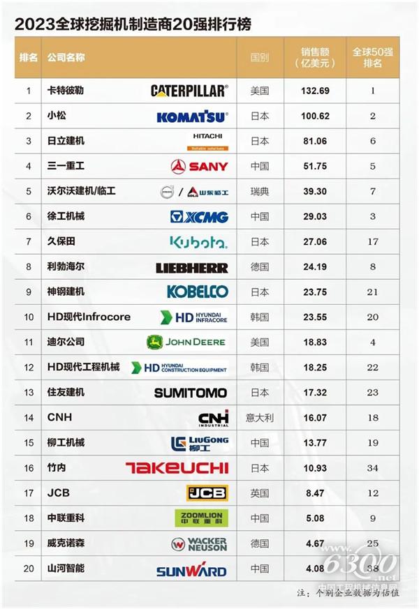 4.六家中国制造商入榜2023全球挖掘机20强;