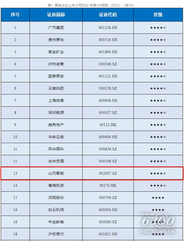 山河智能凭借在国有企业上市公司ESG管理工作中的突出成绩,成功入选“国有企业上市公司ESG·先锋100指数”,位列第十三名。此前山河智能已成功入选2023年上市公司ESG优秀实践案例,获评2023ESG犇牛奖·新秀企业。此次上榜也进一步证明了山河智能ESG工作实践及信息披露做法获得充分认可。
