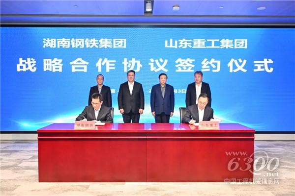 山东重工集团党委副书记、副总经理王志坚与湖南钢铁集团副总经理谢究圆代表双方签署战略合作协议。