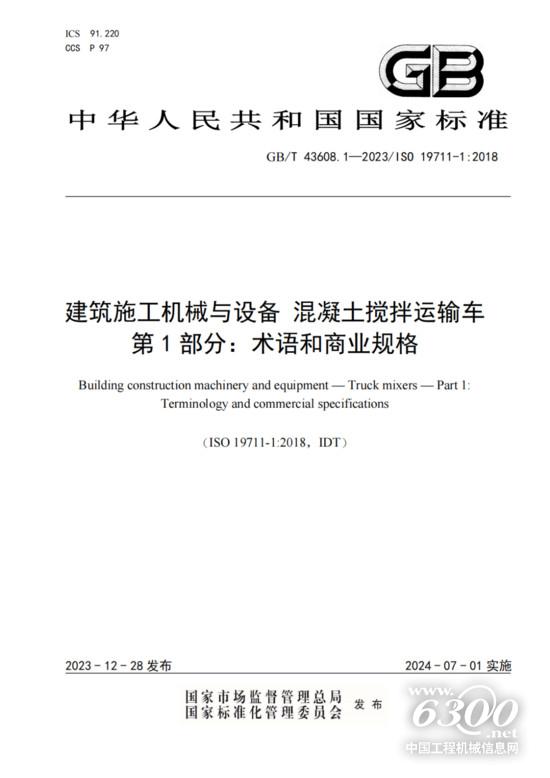 资料显示,中联重科牵头编制的两项国家标准分别是GB/T 43608.1-2023《建筑施工机械与设备 混凝土搅拌运输车 第1部分:术语和商业规格》和GB/T 43609.1-2023《建筑施工机械与设备 混凝土及砂浆制备设备 第1部分:术语和商业规格》。