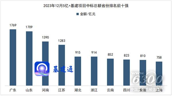 根据大数据统计,2023 年 12 月份工程领域共发布了近 1000 项工程/标段中标,项目中标总额超 16700 亿。其中有 28 个地区工程中标额超过 100 亿元,而超千亿元的省份有 4 个。省份工程中标总额排名榜居前十强的地区有:广东省、山东省、河南省、江苏省、湖北省、浙江省、云南省、四川省、安徽省和上海市。