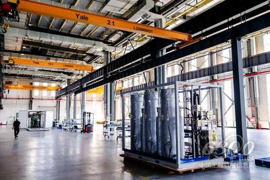 康明斯恩泽PEM电解水制氢设备生产基地是目前国内首批投入使用的吉瓦级PEM电解水制氢装备工厂,也是国际先进的绿氢装备技术研发及制造基地。工厂采用精益化柔性生产模式,可完成焊接、脱脂、装配、测试等工艺,一期产能可达500兆瓦,二期可扩展至1吉瓦。
