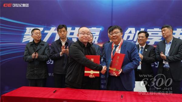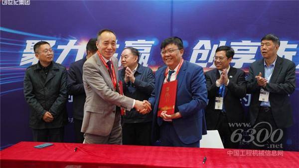 (创世纪集团集团办负责人罗育银先生和乔那科数控装备(江苏)有限公司董事长刘超先生签约、拍照留念)