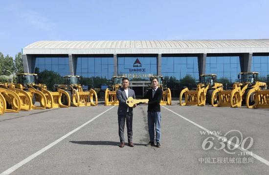 交机现场,客户经过细致验收,对临工产品给予了高度认可和评价。在热烈的掌声中,营销公司副总经理王超把象征着友谊和财富的“金钥匙”交到客户负责人杨总手中。