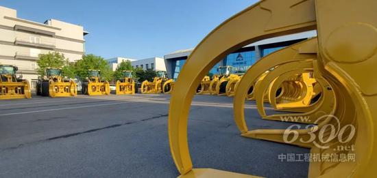 4月20日,山东临工科技展示中心前的广场上,12台临工夹木机和1台压路机整齐排列,一起交付给某中资海外大客户,即将踏上远赴海外施工作业的征程。