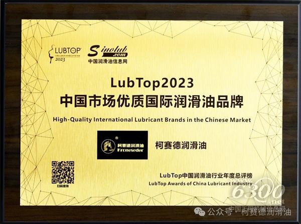 3月28日,具有润滑油行业奥斯卡之称的"LubTop总评榜”评选活动在上海揭晓并发布,来自上海柯赛德斯加美石油集团有限公司旗下运营的“三大知名品牌”之一——柯赛德润滑油在评选活动中被授予“LubTop2023年度中国市场优质国际润滑油品牌”称号。