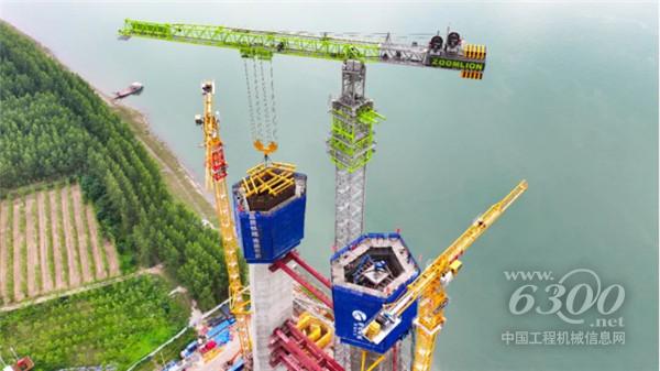 △中联重科多台塔机助建世界最大跨度公路斜拉桥