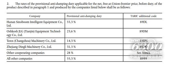 3.欧盟对华移动式升降作业平台作出反倾销初裁;