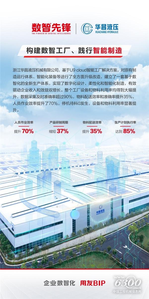 当国内大部分同类企业还停留在劳动密集型生产模式上时,华昌液压已先行一步,于2019年6月就选择与用友结盟,基于用友U9 cloud智能工厂解决方案,开启了为期3年的“基于工业互联网的液压油缸智能工厂”项目建设,率先通过自身优势领域——液压油缸产品,实现了基于智能制造技术的企业转型升级,成为了浙江省数字化车间/智能工厂认定企业。