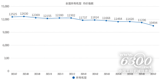 根据上报数据统计计算,2024年7月升降工作平台租金价格指数环比小幅下滑6.60%,所有机型租金价格指数环比均出现不同程度下滑,其中曲臂14~16m(含14m、16m)机型租金价格指数环比降幅最大,达到9.54%;2024年7月升降工作平台租金价格指数与2023年同期相比下降16.22%,所有机型租金价格指数同比出现普遍下滑趋势,其中曲臂14~16m(含14m、16m)机型同比降幅最大,达到19.64%,26~28m(含26、28m)机型降幅次之,接近19%。