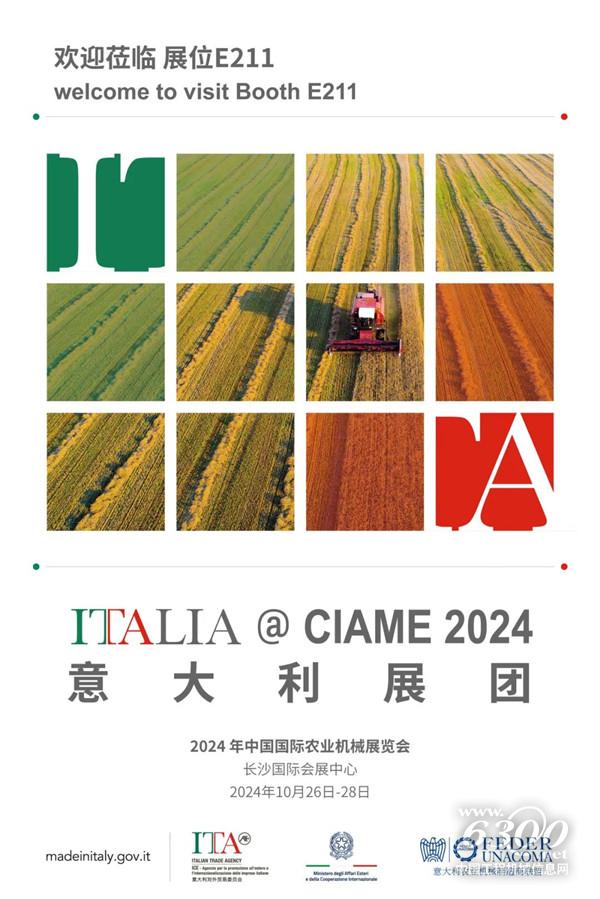 2024 中国国际农业机械展览会(China International Agricultural Machinery Exhibition:Short in CIAME)将于 2024 年 10 月 26 日-28 日首次在⻓沙国际会展中心举办,意大利农业机械亮相在中国重要行业展会。