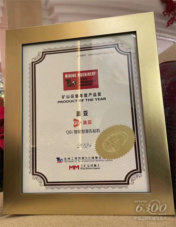 此次峰会除了发布行业权威的TOP全球排名,也颁发了2024矿山设备年度产品奖。经过专家评委客观、公正、权威的评判,盖亚Q6i在众多明星产品中,凭借领先行业的智能化功能,斩获2024矿山设备年度产品奖。