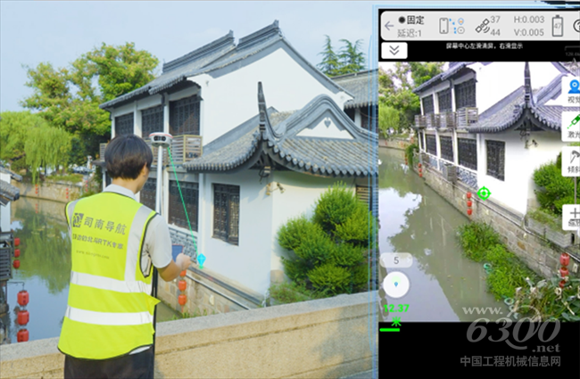 远距离时,通过前置摄像头进行放样路径的引导;近距离时,自动切换到下摄像头展示放样点细节。