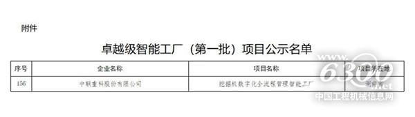 6.中联重科挖掘机智能工厂成功入选卓越级智能工厂;