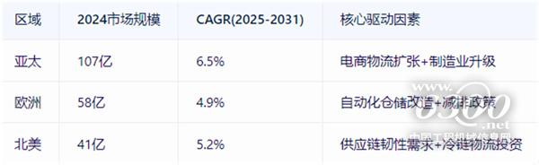 3.2024年全球叉车市场规模达215亿美元;