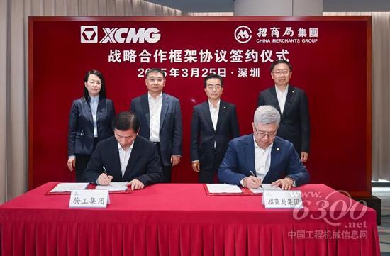 3月25日,徐工集团与招商局集团在深圳招商局广场签署战略合作框架协议。徐工集团、徐工机械董事长、党委书记杨东升,徐工集团党委委员、副总经理邵丹蕾,招商局集团董事长缪建民,副总经理王秀峰出席并见证签约。徐工集团副总经理、徐工汽车总经理夏泳泳与招商局集团总经理助理、董事会秘书,集团办公室主任张军立代表双方签订协议。