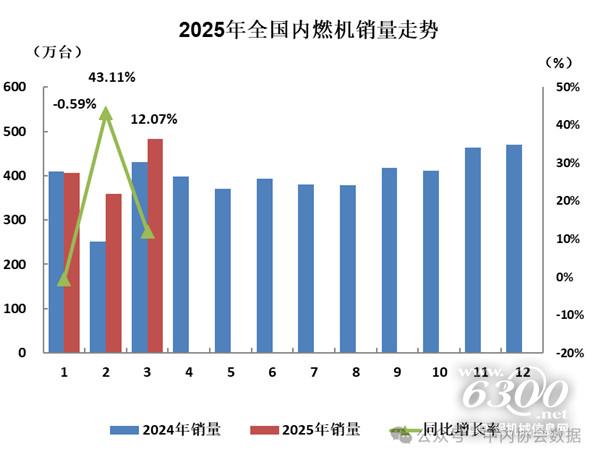 2025年3月内燃机销量环比、同比、累计同比均呈增长态势