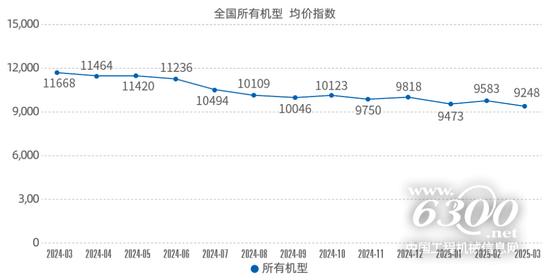 根据上报数据统计计算,2025年3月升降工作平台租金价格指数环比略降3.5%,除20~24m机型环比降幅较大外,其他机型租金价格指数环比涨跌幅度都很小,8~12m机型环比涨幅最大为3.5%,20~24m机型环比降幅最大达到19.8%。而2025年3月升降工作平台租金价格指数同比下降20.7%,各机型同比租金价格指数均处在下降态势,其中≤6m机型同比降幅最小为15.6%,40m以上机型同比降幅最大,达到24.0%。