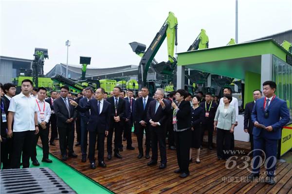 ▲中联重科党委书记、董事长、CEO詹纯新陪同湖南省委书记沈晓明参观中联重科展区