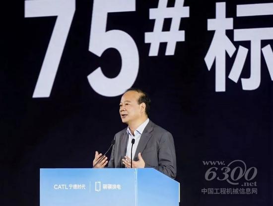 曾毓群现场发布75#标准化换电块,该产品具备三大核心优势:第一,实现全生命周期吨公里成本最低;第二,安全性能达到行业最高标准;第三,完美适配换电模式的标准化需求。
