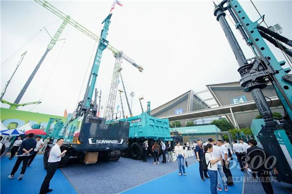 此次山河智能室内室外三大展区展出桩工机械、土方机械、高空机械、矿山设备、应急救援设备、通航设备等众多产品,靓丽的“山河绿”风景线吸引了众多专家领导、行业客户和观众的目光,国内外参观团、媒体记者等纷至沓来,现场人流如织,还有不少用户来到山河智能直播间,和特邀嘉宾一起云打卡。
