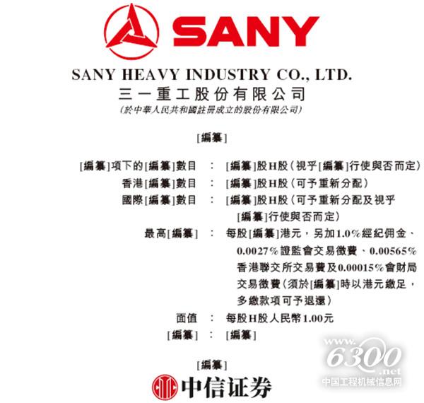 03 三一重工向港交所提交上市申请书,冲击A+H
