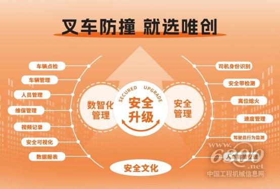 其核心产品系列——叉车防撞系统深度运用AI 视觉算法、雷达感应技术与UWB测距技术,覆盖叉车、正面吊、装载机等机械设备的智能防碰撞、超速报警、重量管理、车队管理等安全服务,精准构建“人、车、货、场”全场景风险预警与防护。