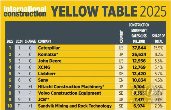 01 13家中企上榜2025全球工程机械制造商50强排行榜