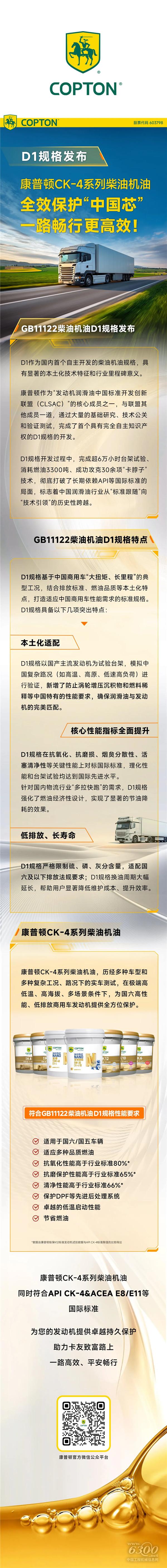 D1规格发布!康普顿CK-4系列柴油机油,全效保护“中国芯”,一路畅行更高效!