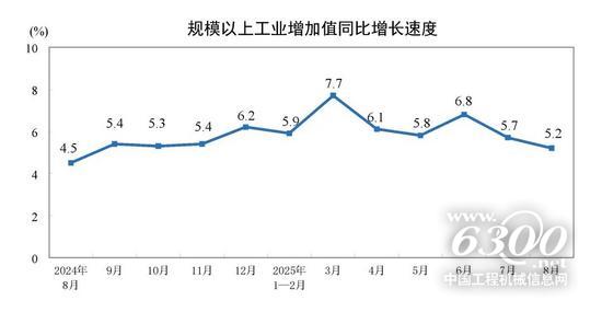 8月份,规模以上工业增加值同比实际增长5.2%(增加值增速均为扣除价格因素的实际增长率)。从环比看,8月份,规模以上工业增加值比上月增长0.37%。1—8月份,规模以上工业增加值同比增长6.2%。