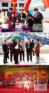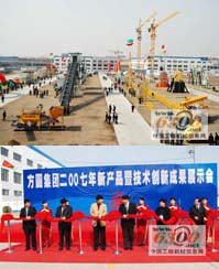 会上,全国建筑机械销售协会会长、山西宝玉建业工程有限公司经理石宝玉、高秀主席、吴常伟总经理等领导一同为方圆集团二OO七年新产品暨技术创新成果展示会开幕剪彩。