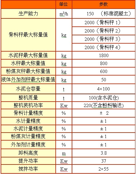 【HZS150主要技术参数 】