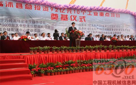 彩旗与飘带同飞,鼓乐同礼炮齐鸣。5月6日上午,临沭县10个工业重点项目集中奠基仪式在山东常林集团40万吨高精密液压铸件项目现场隆重举行,山东常林集团40万吨高精密液压铸件、年产3万台液压挖掘机等2个重点项目参加了集中奠基。临沂市委副书记、市长张务锋,市政协主席孟宪海,市委常委、组织部部长李刚,市人大常委会副主任于中华,市政府市长助理张凌霄,市政府秘书长钱迎伟,市发改委等市直有关部门负责人,孙丰刚、任庆虎等县领导和县直有关部门主要负责人,以及山东常林集团董事长张义华、总裁钟默等出席项目奠基仪式。县委副书记、县长任庆虎主持项目奠基仪式。