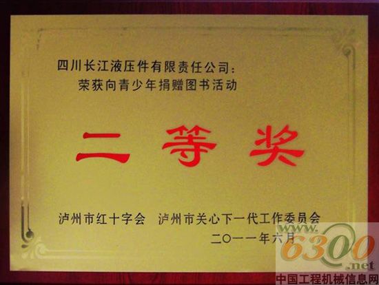 6月17日,泸州市红十字会、市关心下一代工作委员会联合组织了《未成年人安全预防与自救》图书捐赠仪式。四川长江液压件有限责任公司荣获“向青少年捐赠《未成年人安全预防与自救》图书活动”二等奖。
