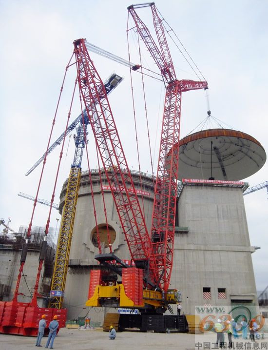 2011年8月26日6时,随着福建宁德核电站穹顶吊装总指挥的一声起吊指令,三一SCC9000履带起重机鸣笛操作起钩,随着提升、回转……等一系列的吊装工作尽显平稳、精确,核电站3#穹顶完美就位,历时48分。
