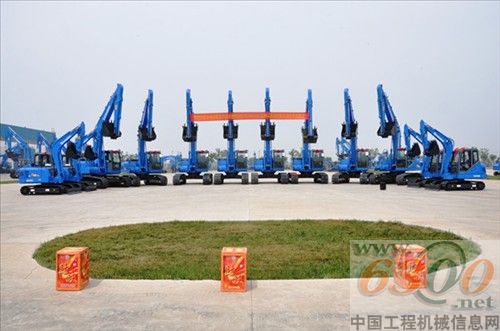 5月14日上午,山重建机(济宁)有限公司的整机停放场里彩带飘舞,烟花满天,漾溢着一派喜庆的气氛。14台即将远赴青海施工的GC系列挖掘机身披红花整齐威武地排放一列,即将远赴青海,奔向国家建设的第一线。