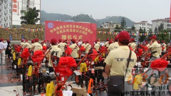 6月15日,中央财政支持社会组织示范项目“农机扶贫荔波试点项目”赠机仪式在国家级贫困县贵州省荔波县市民广场举行,中央财政支持项目向贫困用户赠送了配套常柴186FA柴油机的78台微耕机。公司副总经理徐振平参与了赠机仪式。