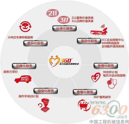 三一起重机在秉承“ANYONE、ANYTIME、ANYWHERE”的服务理念下,推出七化服务(品牌化、标准化、差异化、信息化、增值化、套餐化、亲情化)和九大举措(大吨位专享特级服务、服务万里行、操作手培训、360°服务超市、99关怀、每月主动点检服务、211、 311、ECC企业信息化管理),为起重机客户提供全方位品牌服务体验,并将这种标准成为价值衡量的尺度,引导客户从“价格战”的泥淖中走向理性,回归价值起点,建立健康发展的行业新秩序。