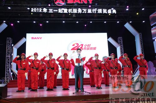 2012年6月19日,国际SOS政府及跨国企业总监徐兵、起重机营销公司总经理李练文为三一起重机首批24小时吊装救援志愿队队员庄严授徽,并接受其宣誓。掷地有声的誓言,赢得行业领导、媒体及客户朋友一致赞誉,现场掌声如潮。至此,三一起重机24小时吊装救援计划正式开始启动。
