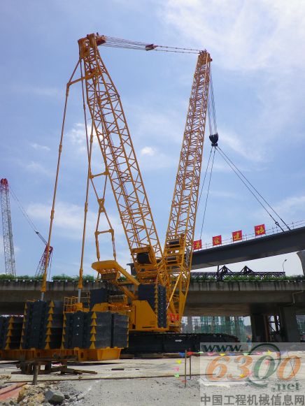 8月14日,徐工QUY650履带起重机在杭州滨江区滨文路与时代大道交叉处彩虹路工地施工,现场采用超起72米主臂工况,超起平衡重半径16米,灵巧地在施工现场进行走、旋转,在蔚蓝天空下,尽情展现他矫健的身子,灵巧地将重达220吨的高架桥板准确、高效地吊到指定位置。(徐工 陆鹤)