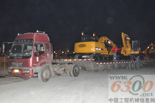 3月14日20:38,雷沃挖掘机发车场内仍然灯火通明,图为雷沃挖掘机正在连夜装车发运