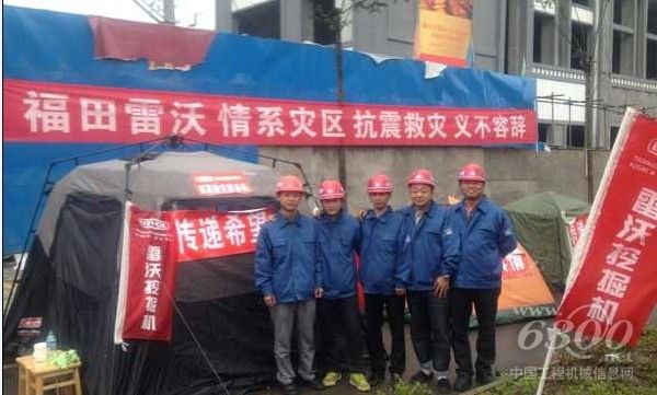 唐建带领的福田雷沃重工抗震救灾服务队被编制在绵阳市工程机械抢险应急大队。在获悉雅安地震消息后,福田雷沃重工便积极响应,组织成立了这只由雷沃装载机、雷沃挖掘机、救灾服务车辆和20名曾经参与过汶川、玉树抗震救灾的优秀机手和服务队员组成的“抗震救灾服务队”,并与雅安救援指挥中心联系,随时准备奔赴灾区参加由政府组织的抗震救灾活动。4月22日,“福田雷沃重工抗震救灾服务队”拿到了进入灾区的通行证。