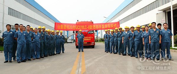 6月26日下午,山重建机举行了20台GC378LC-8挖掘机发车仪式,公司副总经理王跃钦以及营销部、制造部、质量保证部相关人员共同参加了本次发车仪式。